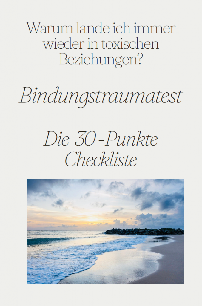 Warum lande ich immer wieder in toxischen Beziehungen? Du nimmst dir jedes Mal vor, diesmal wird alles anders? Und trotzdem gerätst du immer wieder an emotional unerreichbare, manipulative oder narzisstische Partner? Das liegt nicht an mangelnder Stärke. Oft wirken unbewusste Bindungsmuster und alte Prägungen, die sich in Beziehungen wiederholen dahinter. Der kostenlose Bindungstraumatest hilft dir Klarheit zu finden. Danach weißt Du, warum Du Dich immer wieder zu bestimmten Personen hingezogen fühlst und welche Muster dich festhalten. Klicke jetzt auf den Link und lade dir den kostenlosen Bindungstraumatest herunter- Das ist der erste Schritt für mehr Klarheit!